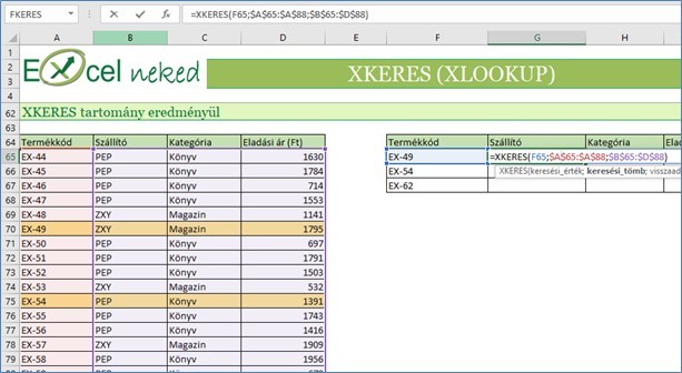 Az XKERES függvény nagyon jó újítás, de csak az Office 365 előfizetésben érhető el! Ha ilyened van, javaslom, hogy ezt gyakorold be a többi függvény helyett, mert tényleg sokoldalú.